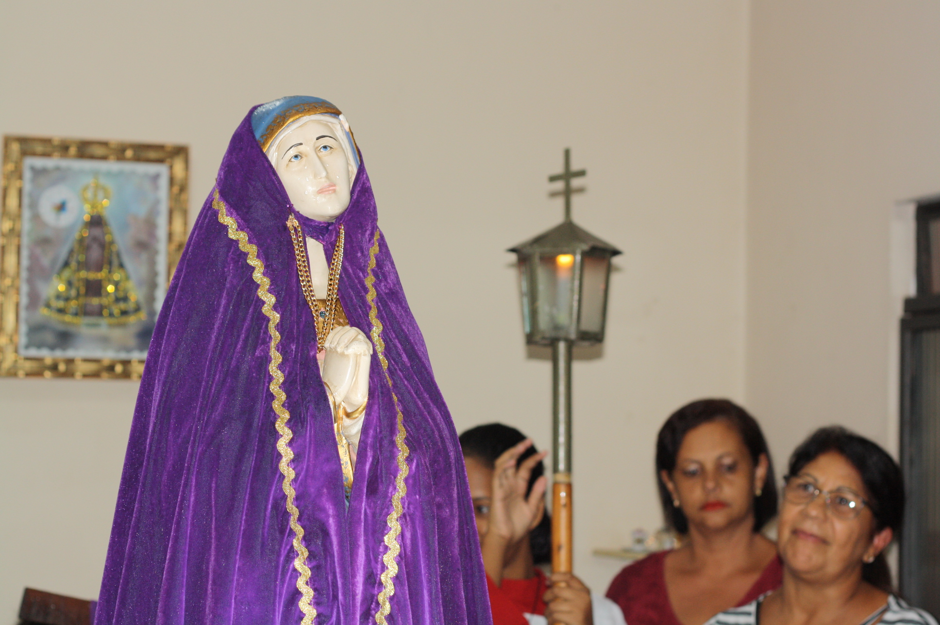 Nesta Segunda Feira (15), mesmo com a chuva, neste segundo dia desta Semana Santa, fizemos a procissão de Depósito da Imagem de Nossa Senhora das Dores na casa de Dona Cida. Com cantos, orações e muita devoção, deixamos a imagem na casa desta família para na Quarta-feira caminharmos em procissão, para o Sermão do Encontro na Comunidade Santa Isabel as 19:30.