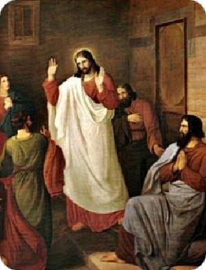 20 19 Na tarde do mesmo dia, que era o primeiro da semana, os discípulos tinham fechado as portas do lugar onde se achavam, por medo dos judeus. Jesus veio e pôs-se no meio deles. Disse-lhes ele: “A paz esteja convosco”!